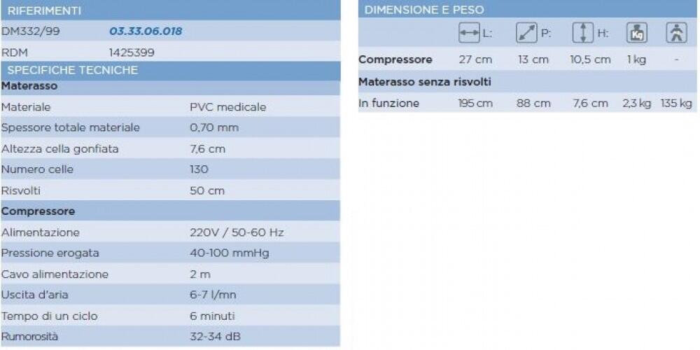 Blazina je primerna za bolnike s težo do 100 kg, kompresor pa ima zmogljivost napihovanja blazin z nosilnostjo do 150 kg.