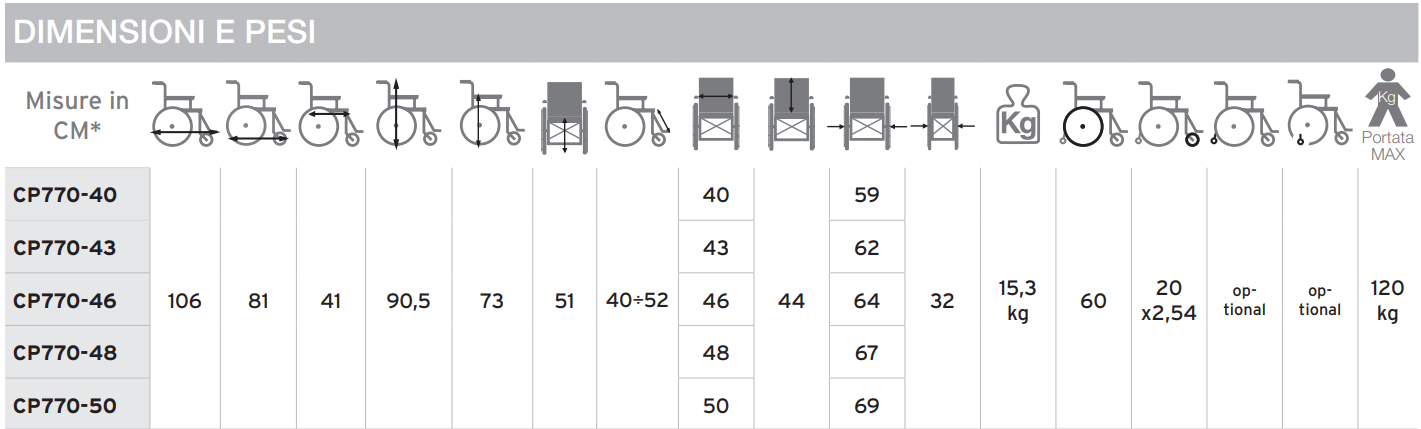 Na voljo v širinah sedeža: 40cm, 43cm, 46cm, 48cm in 50cm.