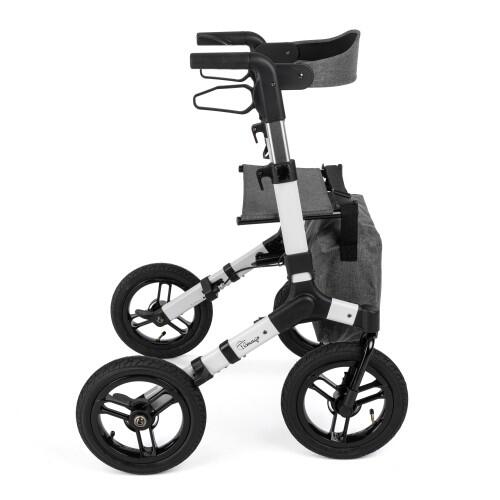- ima pnevmatska kolesa premera 12” in po višini nastavljive ročaje, zaključene z anatomskimi ročaji,